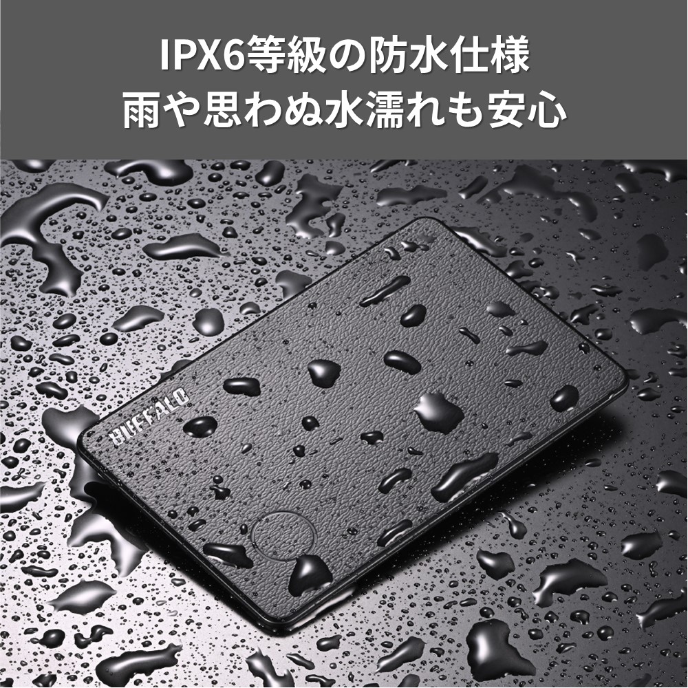商品表面にはシボ加工を施しており高級感と共に細かな傷も目立ちにくく、端面はエッジ部分に丸みを持たせることで、カードポケットへの収納もスムーズ。また、汗や雨による濡れにも強い「IPX6」等級の防水仕様で、持ち運び時の水濡れも気にせず利用できます。