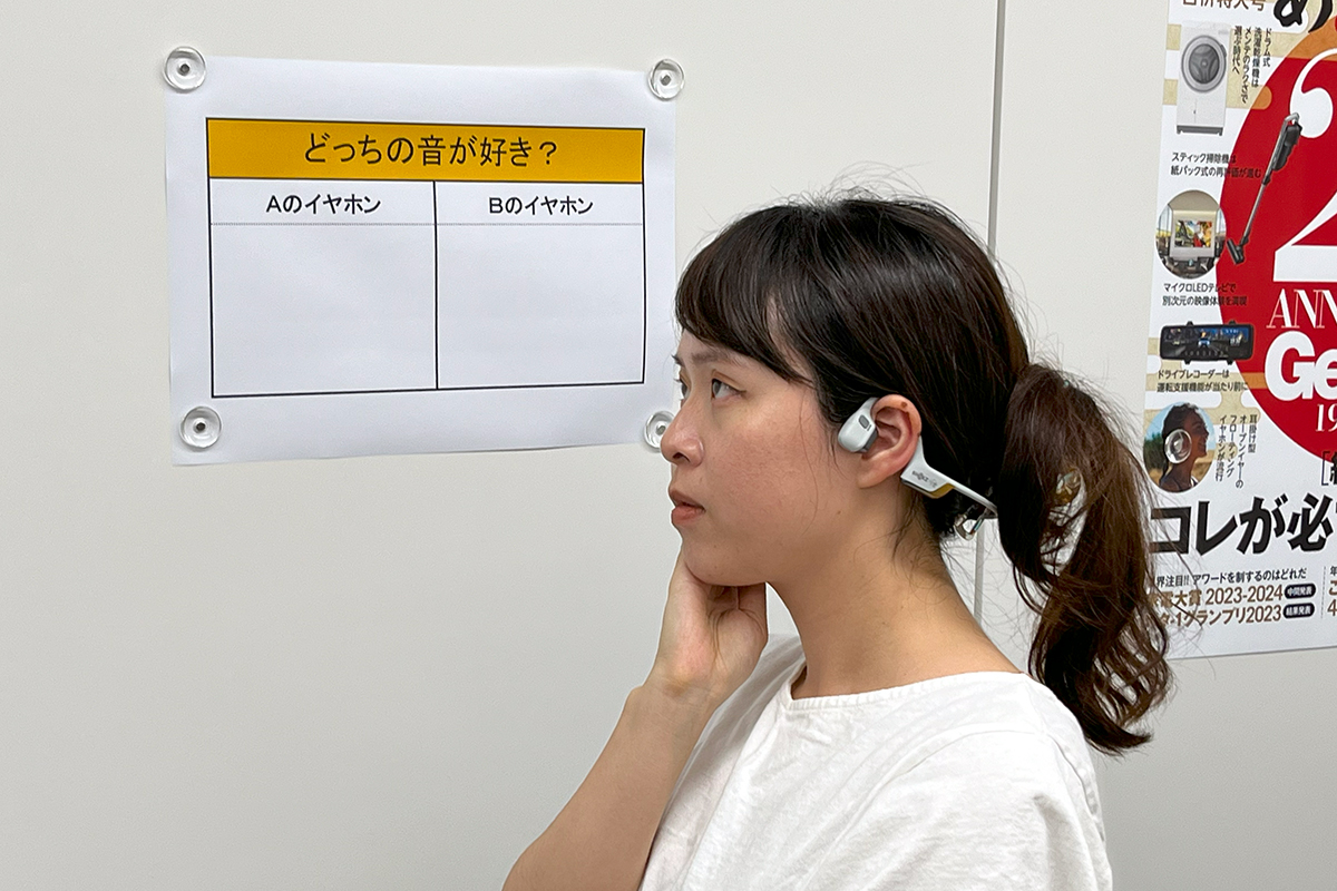 しかし、音質が進化したといっても「本当に違いがわかるレベルで変わったの?」と疑問に思う方もいらっしゃるかもしれません。そこで今回、GetNavi web編集部では、新モデルのOpenRun Pro 2と従来モデルのOpenRun Proを使って、ブラインドテストによる音の聴き比べを実施。しかもテストに参加したのはオーディオ担当以外の編集部員や営業部のスタッフなど、あまりオーディオに詳しくない人も含めました。その数は総勢20名。この聴き比べの様子はGetNavi webの公式Xにて動画で公開していますので、そちらもぜひチェックしてみてください。