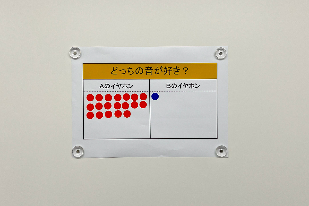 ちなみに、唯一Bを選んだ方は、普段からビンテージのアナログレコードを聴いているそうで、あまりクリアな音が好みじゃないという理由でBに投票したとのこと。