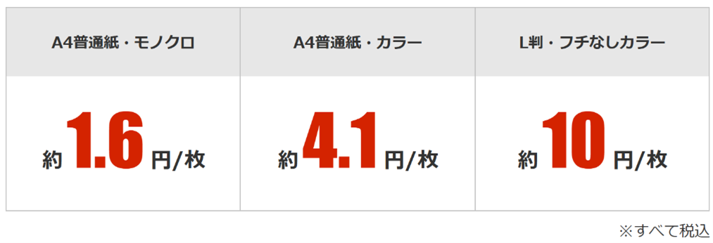 また、A4普通紙・モノクロなら約1.6円(税込)/枚、A4普通紙・カラーなら約4.1円(税込)/枚、L判・フチなしカラーなら約10円(税込)/枚という低ランニングコストぶりも見逃せません。時間もコストもカットして、タイパアップを実現できるのがうれしいですよね。
