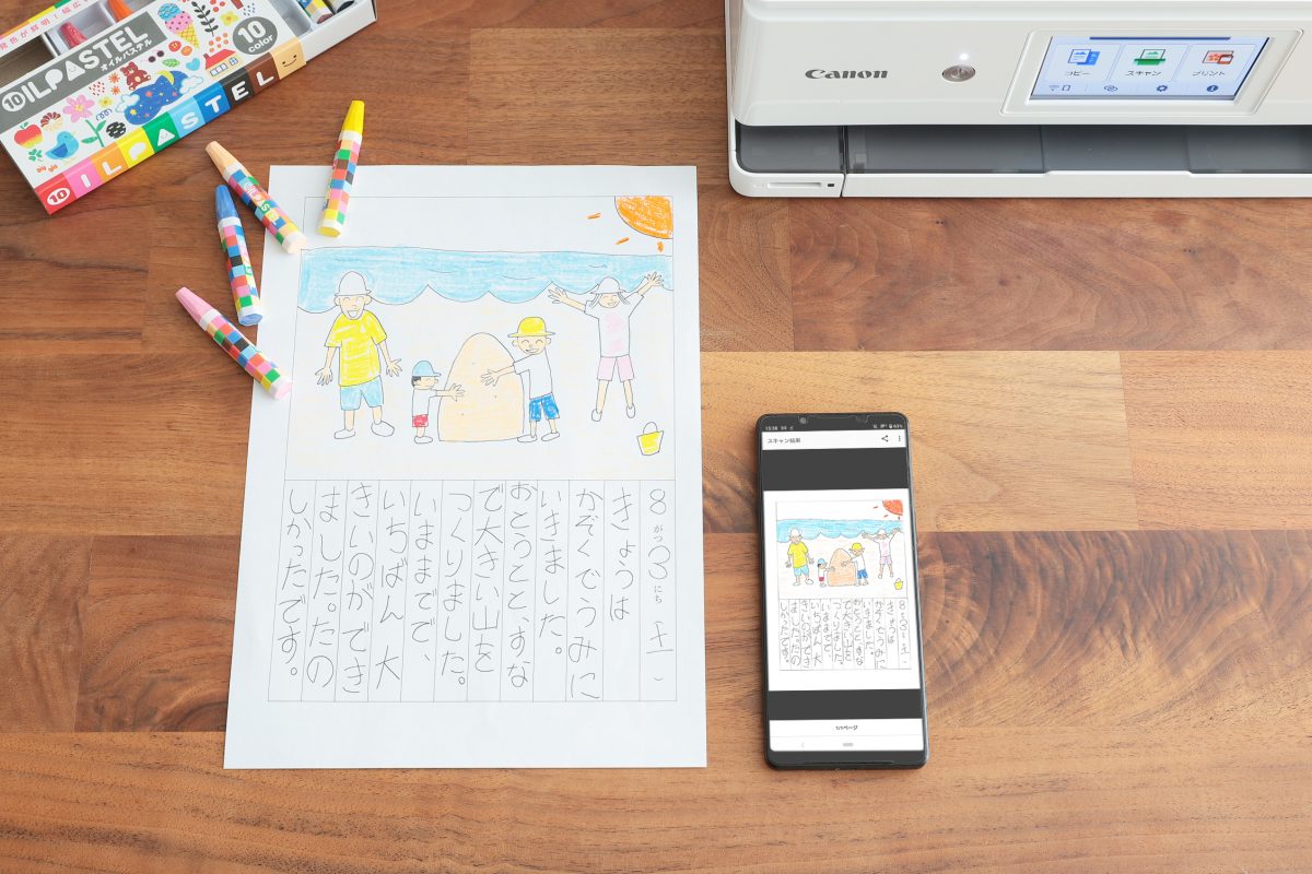 パソコンを使った場合に比べて時短できるのはもちろんですが、感心したのはプリンターでスキャンしたデータをダイレクトでクラウドサービスに共有できることでした。たとえば子どもの描いた似顔絵などを、家族間で素早くきれいに共有できるわけです。“大切な思い出”をきっかけにして、家族・友人間のコミュニケーションがより充実したものになる、あるいはコミュニケーションの機会が増えれば、それもまたタイパの改善と言えるでしょう。