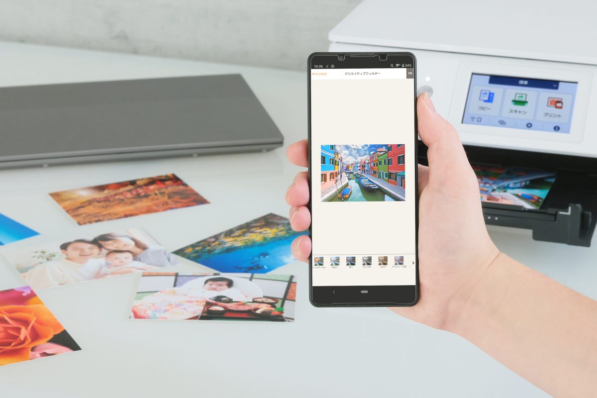 たとえばパソコンライクに写真のレイアウトや加工ができるアプリケーション「Easy-PhotoPrint Editor」や、LINEのトーク画面からすぐにプリントできる「PIXUSトークプリント」が利用できます。そのほか、プリント番号を発行してSNSなどでシェアし、PIXUSユーザー間でコンテンツを共有するなんてことも可能です。こうした便利機能を使えば、スマートフォンひとつであらゆる作業を完結できます。