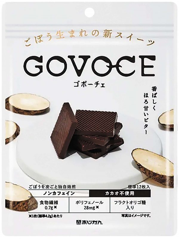 焙煎ごぼうとカカオに、共通の香気成分が8種類あることを発見し開発。カット、乾燥、焙煎、粉砕、加工を経てチョコレートのような味と口どけを実現した。ノンカフェインなのもうれしい。