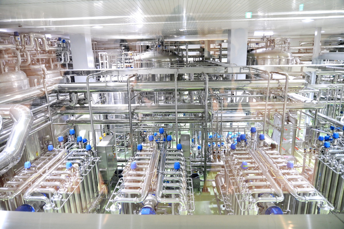 ろ過はその名の通りですが、発酵と貯酒を経て熟成を終えたビールから、オリ(沈殿物)を取り除き、役目を終えた酵母を除去する工程。こちらは窓から室内をのぞく見学となりますが、タンクがたくさんのパイプでつながれている様子は、「いかにも工場」といった光景で、心が躍ります。