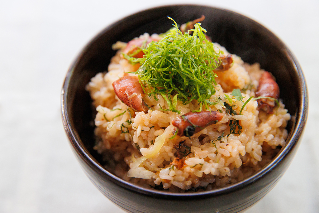 「ホタルイカの肝の風味に、生姜の辛味がピリッと効いた、ごちそう炊き込みご飯です。ホタルイカは目と口を取るだけ、生姜は薄く刻むだけでOK。あとは炊飯器におまかせと、簡単なのに贅沢な一品が完成します。仕上げに刻んだ大葉とみょうがを混ぜ込めば、爽やかな香りと食感がアクセントになります」