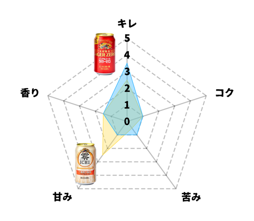 甘みや香りは『零ICHI』のほうが個性的で、ビールらしい苦みや酸味、すっきりキレのある爽快感は『ラガーゼロ』のほうが印象的だと思います。