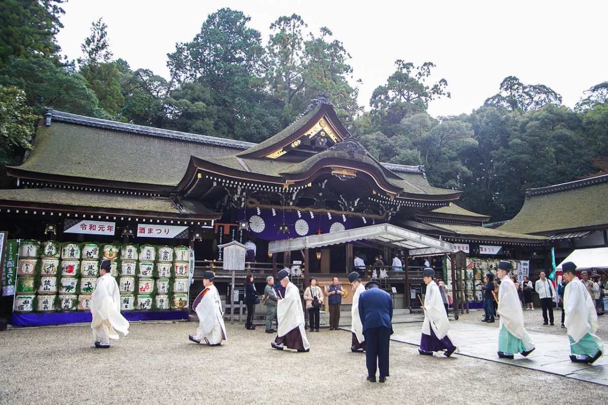 新酒の仕込みにあたる毎年11月の「醸造安全祈願祭(酒まつり)」は、大神神社の一大行事。全国の酒蔵や洋酒会社、さらには醤油や酢の関係者、大学教授など多彩な顔ぶれが集まり、醸造の安全を祈願します。