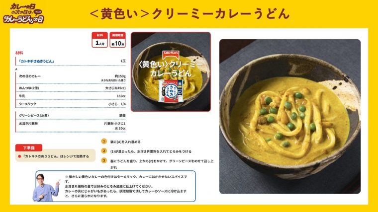 そこで制定されたのが、『カレーの日の次の日は「カレーうどん」の日』。これをひとつのきっかけにレシピなどの悩みを解決し、毎日の食卓をより楽しくしたいというのが同社の想いです。