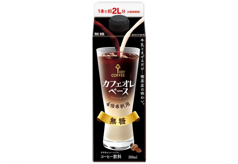 希釈用コーヒー市場で伸びている「無糖」ニーズ。これを受けて「KEY カフェオレベース 無糖」が、より本格的な味わいとデザインにリニューアルされます。