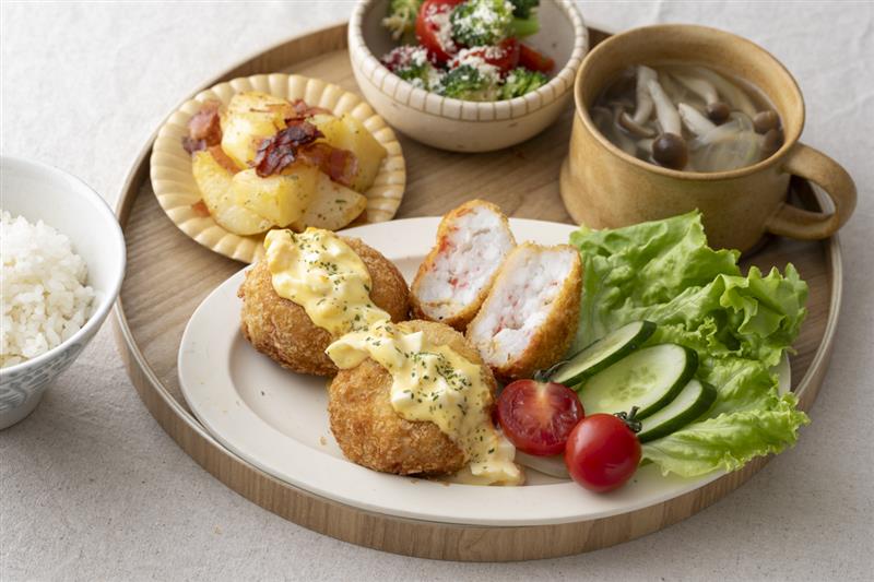 特に目を見張るのは、驚きの「かさ増し」&「代用」テクニックです。たとえば、本の表紙にも載っている「はんぺん de えびカツ風」は、えびを一切使わない「えびカツ」なんです! カニカマを使うことで、まるでえびが入っているかのような味わいに。はんぺんは過熱すると膨らむので、お腹も大満足です。