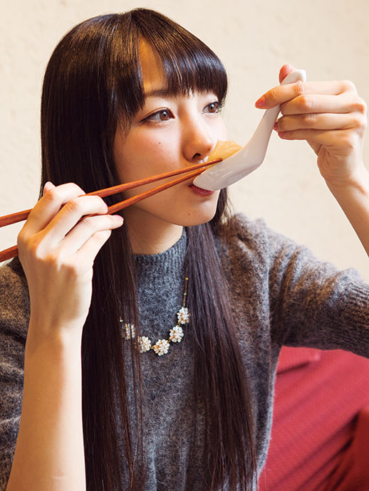 「鈴木香音さんとカレー同盟を組んでいて、よく一緒に食べに行きます。お互い、いろんなカレー店を知ってるので、じゃあ次はここに行きましょうって感じで。私は日本のカレーよりもインドカレーのほうが好きなんですけど、ナンじゃなくてサフランライス派。知ってました? カレーを食べると幸せホルモンが出るんですよ。カレーを食べれば幸せになれるんです!」