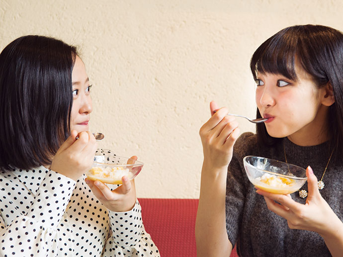 肉汁たっぷりの小籠包!(小田さくら)/マンゴー味の台湾風かき氷!(飯窪春菜)