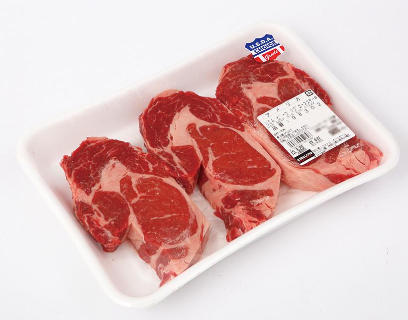きめ細かい肉質のリブロースを厚さ約2.5㎝にカットしたステーキ肉。米国農務省の格付け2位の等級「チョイス」に認定されており、品質は文句なし。ジューシーで、肉本来の旨みが満喫できます。