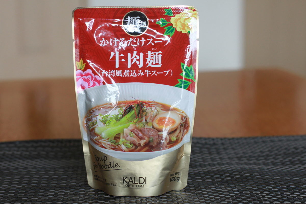 台湾でメジャーな屋台料理「牛肉麺」が家庭でも手軽に味わえるスープです。こちらはスープのみで麺は別売。今回は手軽に使える「流水麺」を使いました。作り方はカンタン。レトルトを湯煎して好みの麺にかけるだけです。スープは甘みと辛味のバランスが抜群で、牛肉のダシもよく出ています。八角の香りが台湾の屋台を思い起こさせますね。細切りの牛肉がしっかり入っているのですが、今回は八角つながりで豚の角煮をトッピングしてみました。そうめんのようなさっぱりした麺もよく合いそうです。