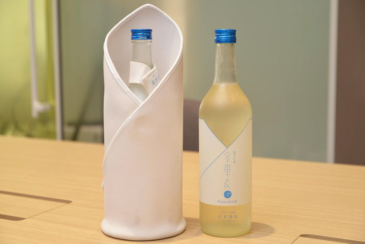 シャープの液晶技術から生まれた蓄冷材料を保冷バッグに応用した、埼玉県・石井酒造の純米吟醸酒「冬単衣(ふゆひとえ)」。冷たいながらも豊かな甘味を感じられ、キリっとした飲み口が絶妙です。