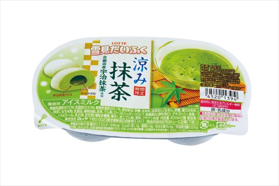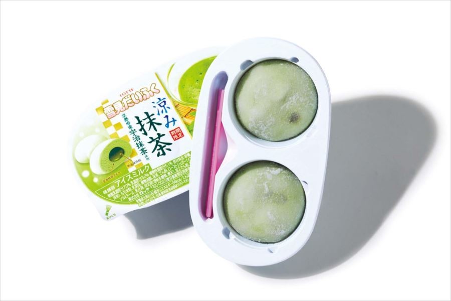 京都名産の宇治抹茶を使ったアイスに、同じく宇治抹茶のあんを閉じ込め、それらを薄皮の生地で包んだ特別な雪見だいふく。ほろ苦さと甘さがおもちの柔らかな食感と調和し、繊細で上品な味を楽しめます。