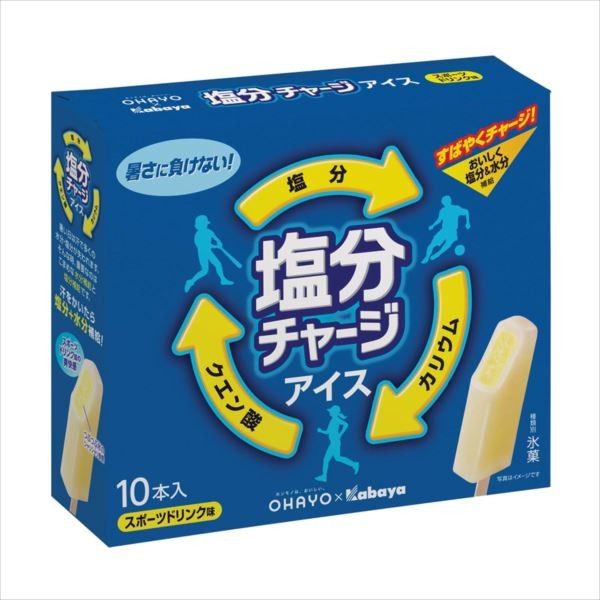 発汗によって失われる水分・塩分をチャージできる「塩分チャージアイス」(実売価格278円)が登場。つぶ氷入りのスポーツドリンク味で、食塩、カリウム、クエン酸が入っています。今夏はクールに塩分チャージを。