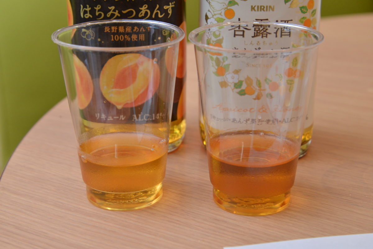 8月27日に発売された「杏露酒 はちみつあんず」と、定番の杏露酒との飲み比べも体験。ちなみにこの新作は50周年を記念して、いっそう素材のよさにこだわった内容になっています。