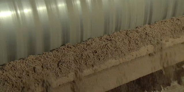 ↑ カカオ豆を焙煎した後、粉々にしてチョコレートを作る様子