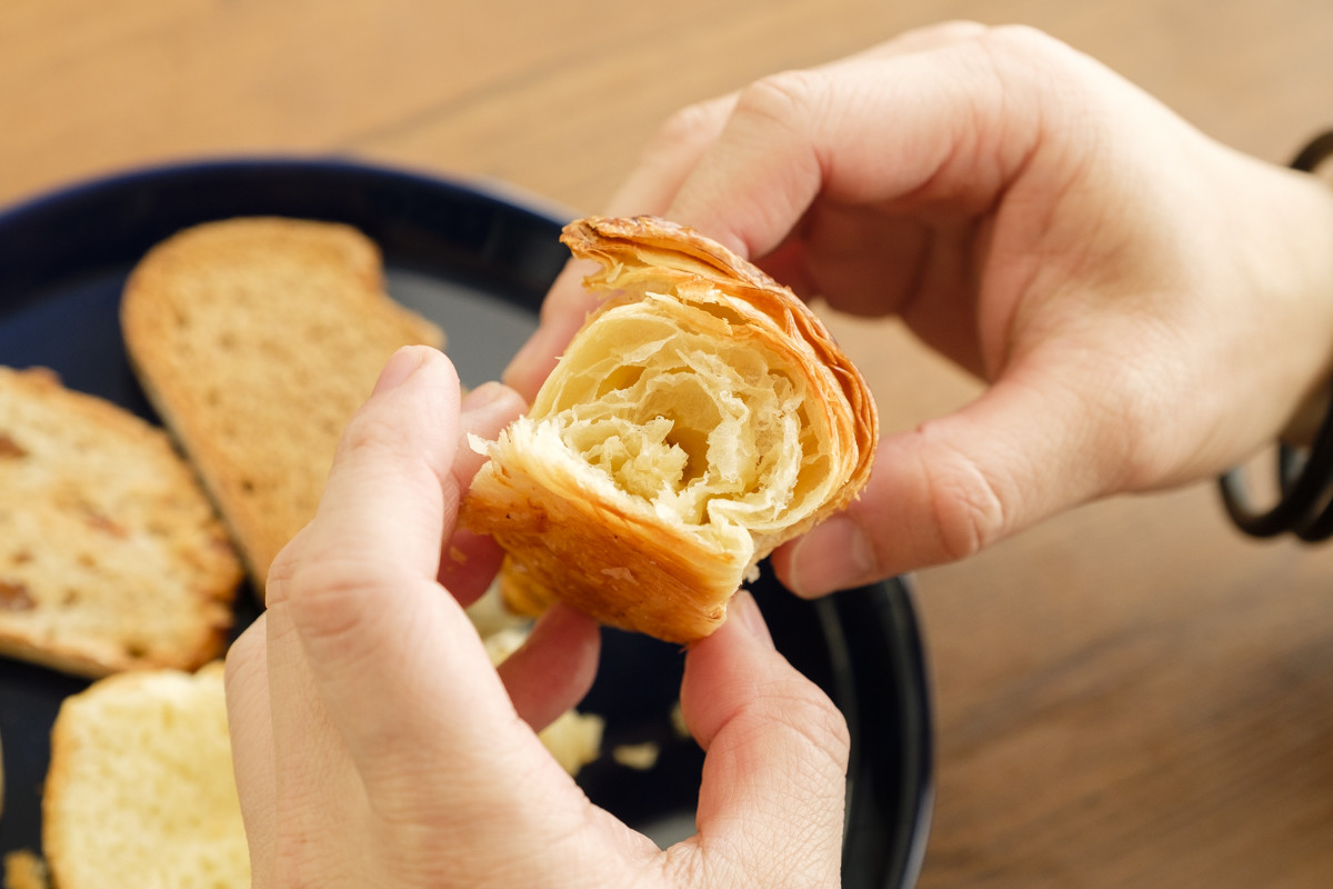 中山秀明さん(以下:中山) 一般的なクロワッサンよりも縦長ですね。それと、大きさの割にズッシリ感があります。バターの香りがしっかり出ていて、やはりバターのおかげなのか噛めば噛むほどに甘みが出てくる。これはピカール全体の特徴と言って良いかもしれないですが、「冷凍食品だ」と言われなければ気づかないほどのクオリティだと思います。