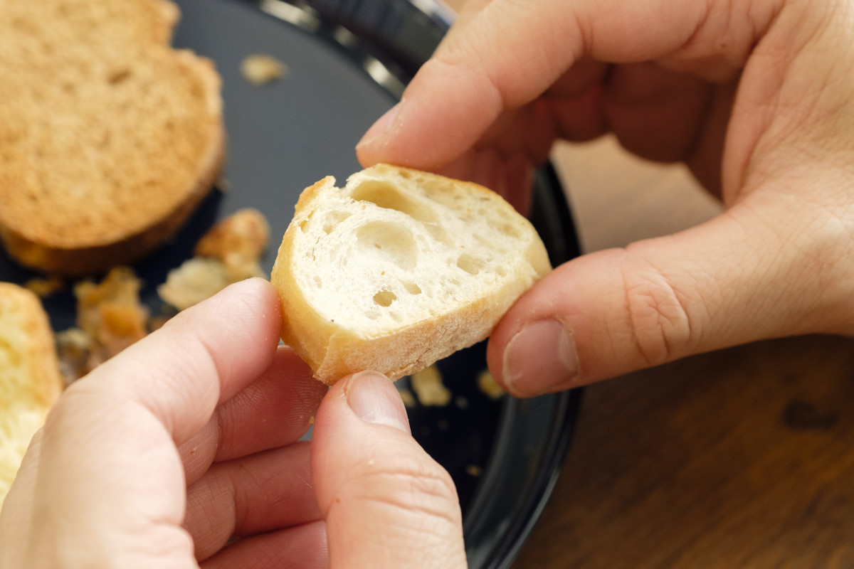 中山 先ほどのクロワッサンに比べて、ややモチャッとした食感がありました。ここは好みが分かれるかもしれませんね。ただ、コスパが良いことと、ミニバゲットなので冷凍庫の中にあっても嵩張らないのが良いですね。薄く切ってカナッペやラスクにすると、食べやすいと思います。