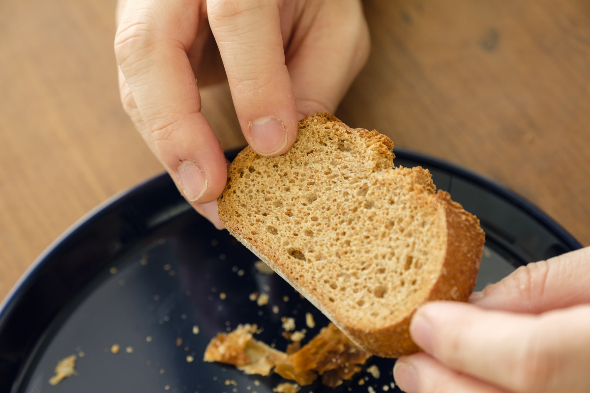 中山 これも先ほどのミューズリーパンと同じで、結構密度のあるパン。フワフワというよりもズッシリしている。カリカリしているので、やはりお酒のおつまみとして良さそうですが、バターを塗ると良い気がします。バゲットはオリーブオイルなどでも良いですけど、これはバターのほうが合うと思いますね。