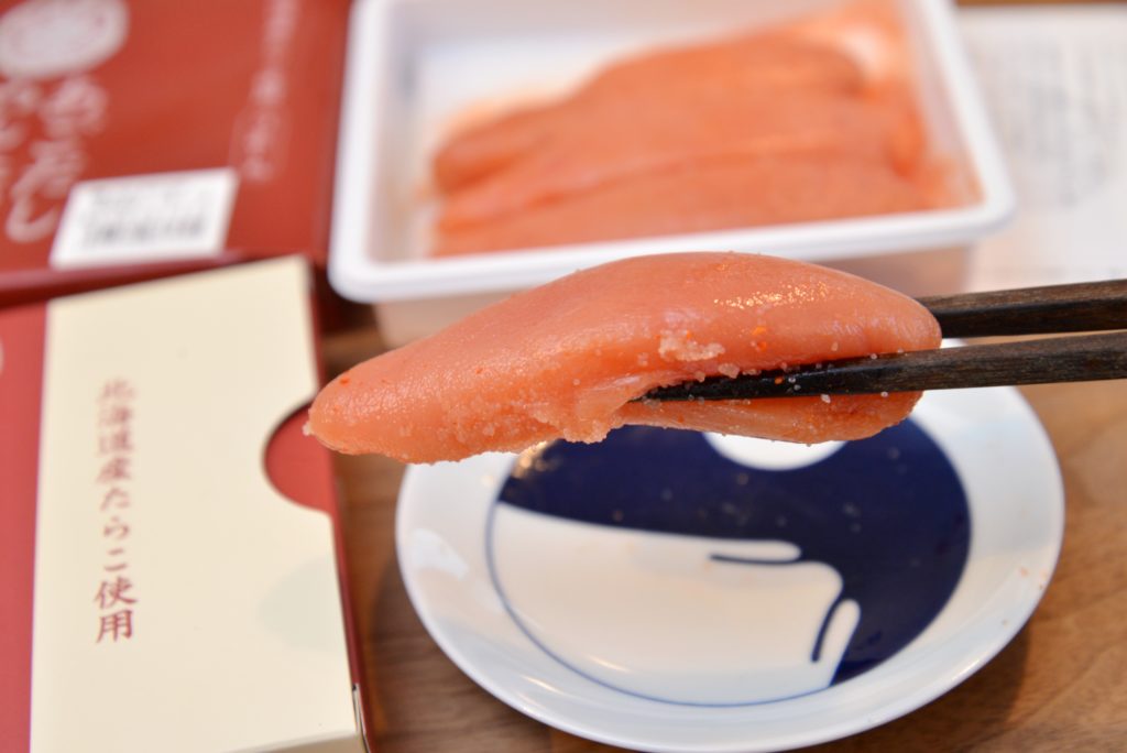 「椒房庵」で最初に感じるのは、ブライトでシャープな塩味。そのあとから、丸みを帯びたうまみの波が口いっぱいに広がっていきます。これがたらことダシと調味料のハーモニーが生み出す明太子のファンタジー。粒は大きめで、口どけはしっとりジューシー。高級明太子のお手本といえる、正統派のおいしさだと感じました。