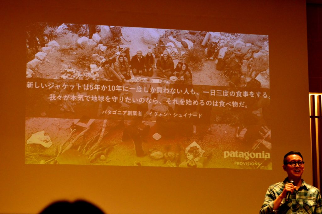発表会では、メルシャンが輸入している代表的なオーガニックワインの試飲と、マッチする料理とのマリアージュが実施されました。そのなかで一部フードの素材を提供したのは、なんとアウトドアブランドとして有名な「パタゴニア」。