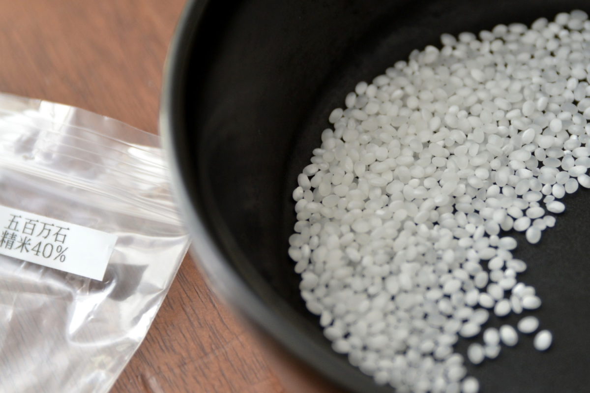 酒米は「西の山田錦、東の五百万石」と称され、新潟県生まれで全国的にもポピュラーな酒造好適米・五百万石を100%使用。米を深部まで磨いて華やかな香味をもたせた純米大吟醸(精米歩合50%以下で米と米麹、水のみを使用)として仕込んだところ、今回はそこに大きな壁が立ちはだかったといいます。それは、今回使用した五百万石は心白(しんぱく・米の中央部の白い部分のこと)が大きいため、磨きすぎると崩れやすかったこと。精米歩合50%以下の高度精米は難しいという性質があったのです。