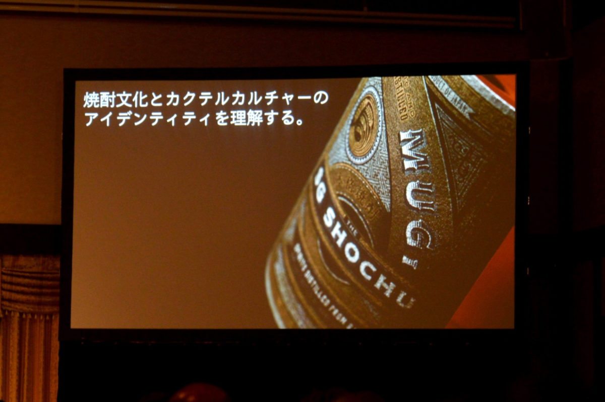 発表会で登壇した後閑さんは、「The SG Shochu」のラベルデザインを紹介するとともに、各商品のネーミングについても語ってくれました。