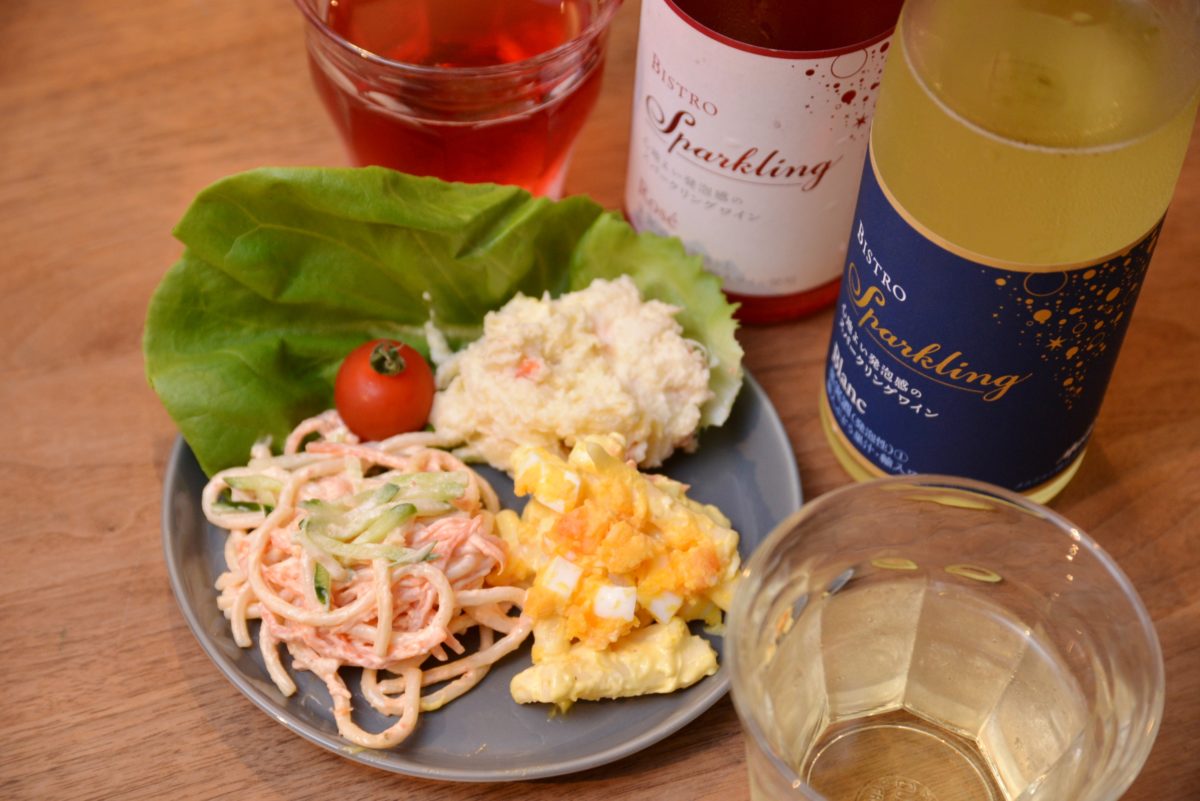 カジュアルスパークリングはデイリーで楽しむコンセプトのため、合わせるのは欧風料理に限らず、和食や中華といった日常的なおつまみでOK。赤宗さんの例にそって用意し、ワインの味とともに相性を確かめてみました。