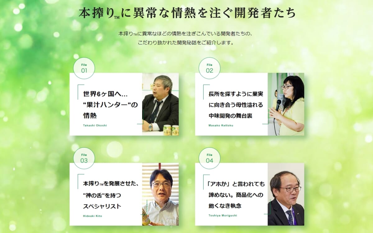 なお「本搾り」は香料、酸味料、糖分などは使わないため、味づくりは非常に難しいのだそう。だからこそ世界中から果実を厳選して集め、その組み合わせと搾り方で目指す味へと調整するのです。