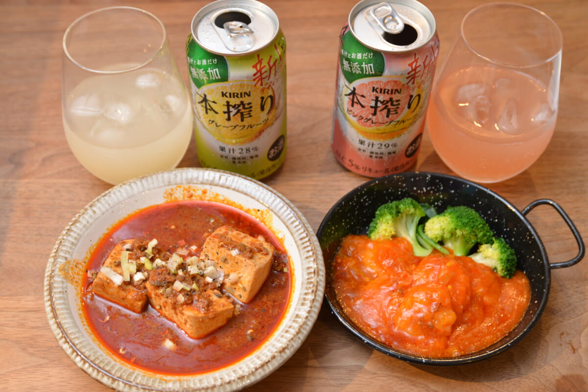 こちらは鈴木さんが解説。「グレープフルーツとピンクグレープフルーツは、ともに酸味、苦味とほんのり甘味があるフレーバーです。そこでオススメなのが中華。ほのかな甘味が料理の辛味をやさしく、また、お酒の甘味と料理の甘味の相乗効果があるので、海老チリのほかに酢豚なども合うと思います」とのこと。
