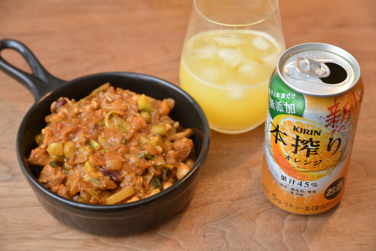オレンジは明るい甘酸っぱさと、温かみのあるジューシーさが絶妙。「お酒には甘味があったほうが飲みやすい」という人はこのオレンジから試してみるとよさそうです。カレーとフルーツの相性のよさは、「バーモントカレー」でもおなじみ。苦味や酸味のやさしいオレンジの風味が、カレーの刺激を包み込んで調和する好ペアリングです。