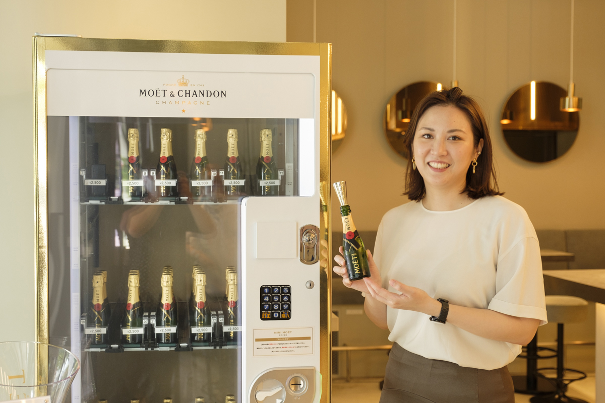 吉田 はい。おっしゃる通り、たしかにフルボトルのシャンパンは、飲用の機会が制限されてしまうような、と感じられる方も少ないと思うのですが、ミニ モエならお一人でも楽しめます。新型コロナウイルスのこともありますけれど、日常では少人数で過ごすことが多くなったこの時代に、ミニ モエはマッチしているのではないかと思います。より多くの人に気軽に楽しんでいただくために、今回自動販売機も用意したというわけです。