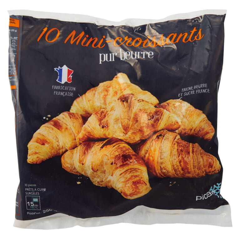 まろやかな風味の冷凍クロワッサン。発酵バターや平飼い卵など、フランス産の厳選素材のみで作られている焼く前の成形された状態で冷凍されており、オーブンで約18分焼くと、焼き立てを楽しめる。10個入り。