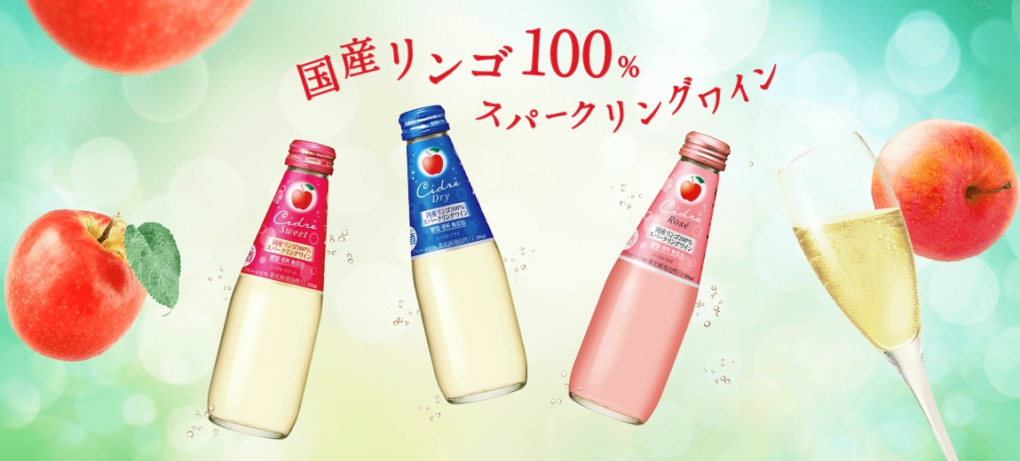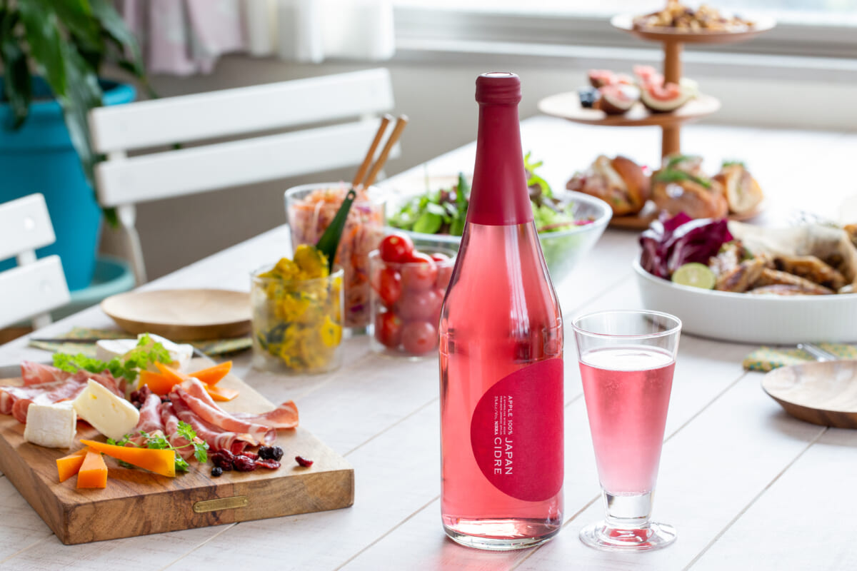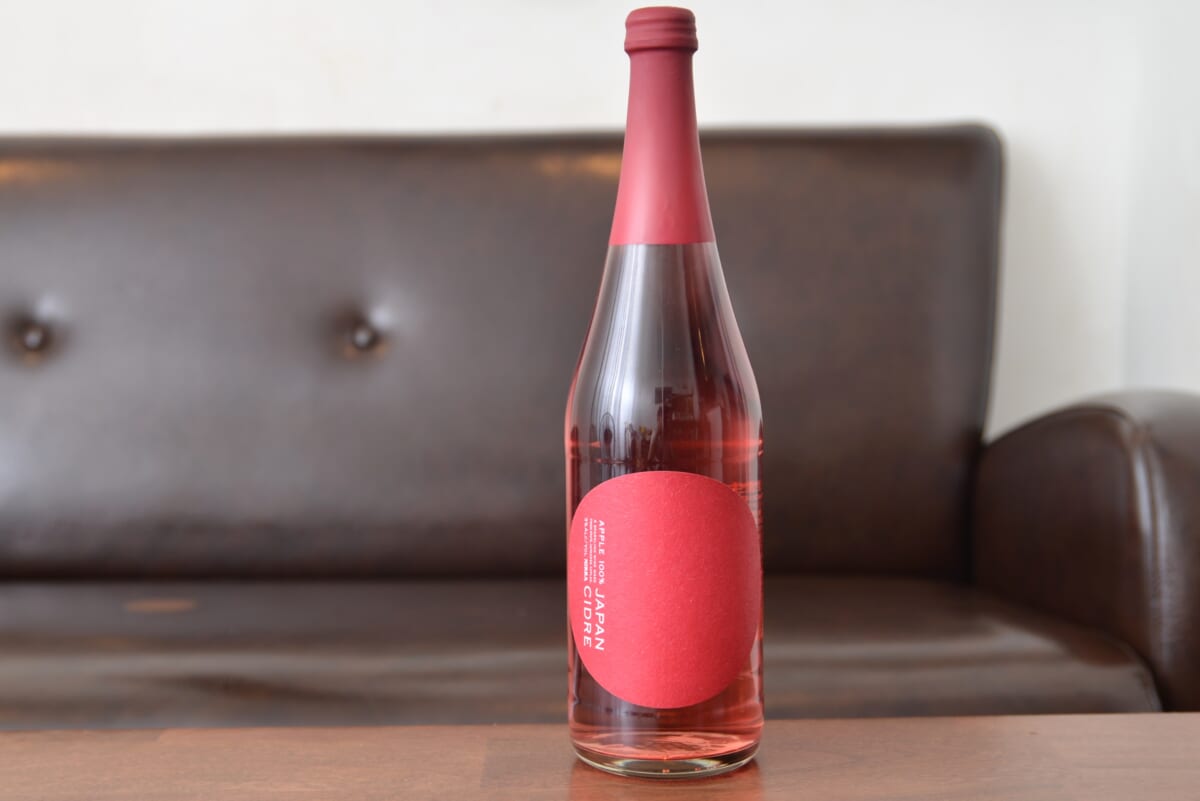 これはボトルをカラーリングしているのではなく、シードルそのものの色なのです。そして、リンゴの果実や日の丸を彷彿(ほうふつ)とさせる円形の赤いラベル。控えめに書かれたアルファベットのロゴなども凛としていて、日本らしい美しさを感じます。