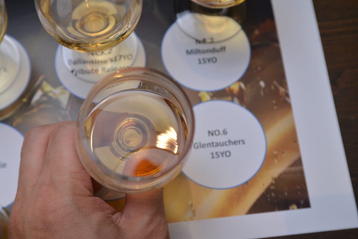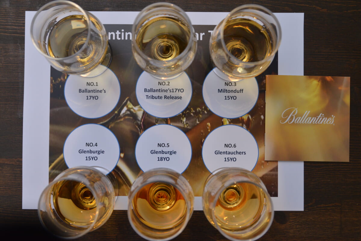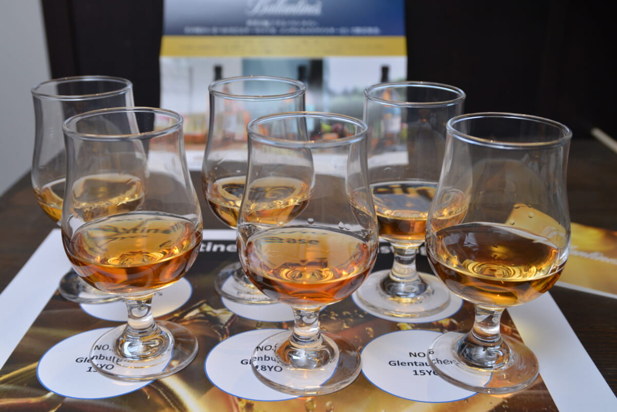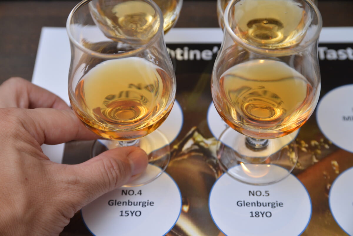 次は、グレンバーギー蒸溜所の15年と18年をテイスティング。同蒸溜所もスペイサイドにあり、ここで作られる原酒は、すべてのバランタインブランドの中核となるキーモルトとして使用されています。