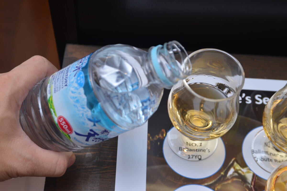 ヒスロップ氏がふだんテイスティングする際は加水しながら行うということで、それに従うことに。これにより、多彩なフレーバーを敏感にキャッチすることができるのだとか。また「もちろん皆さんがご自宅などでウイスキーを楽しむ際は、お好みの飲み方で味わってください」とヒスロップ氏。