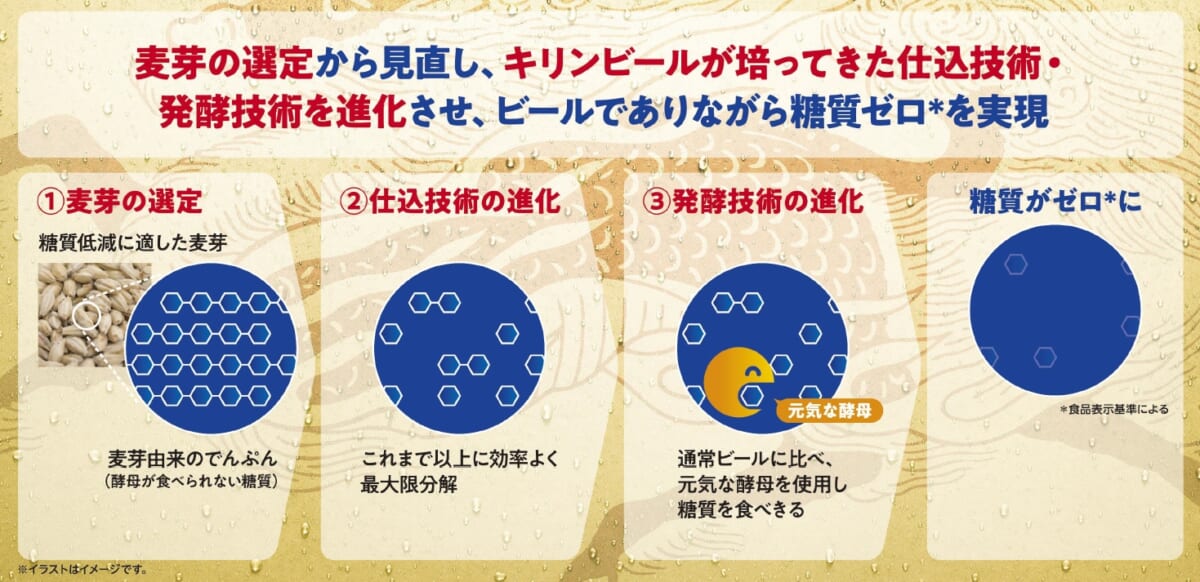 麦芽比率がビールより少ないぶん、うまみが軽やかでおとなしい方向性。確かに麦に由来するコクの物足りなさは否めませんが、ボディの厚みはなかなかのもので、思った以上に飲みごたえがあります。糖質もプリン体もゼロという商品特性からリピート率が高い商品とのことですが、お得かつヘルシーに楽しみたい人には十分アリな一本ではないでしょうか。