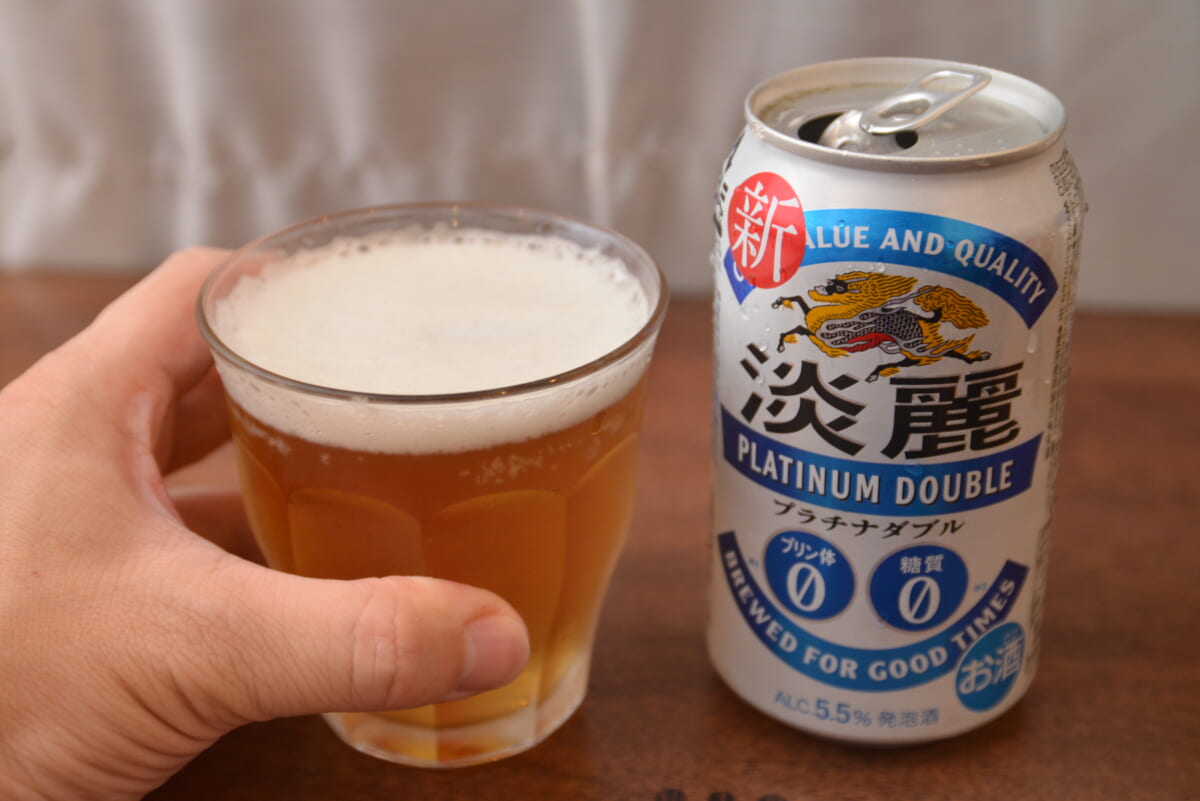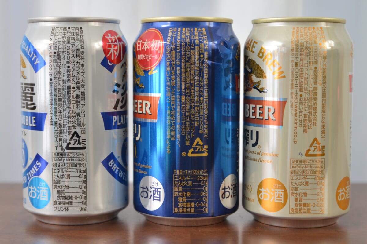 そして最後は「淡麗プラチナダブル」。アルコール度数は5.5%と今回の中で最も強く、エネルギーは100mlあたり31kcal。また、詳細は長くなるので割愛しますが、麦芽比率や原材料の関係で「淡麗」シリーズは新ジャンルではなく発泡酒扱いとなります。