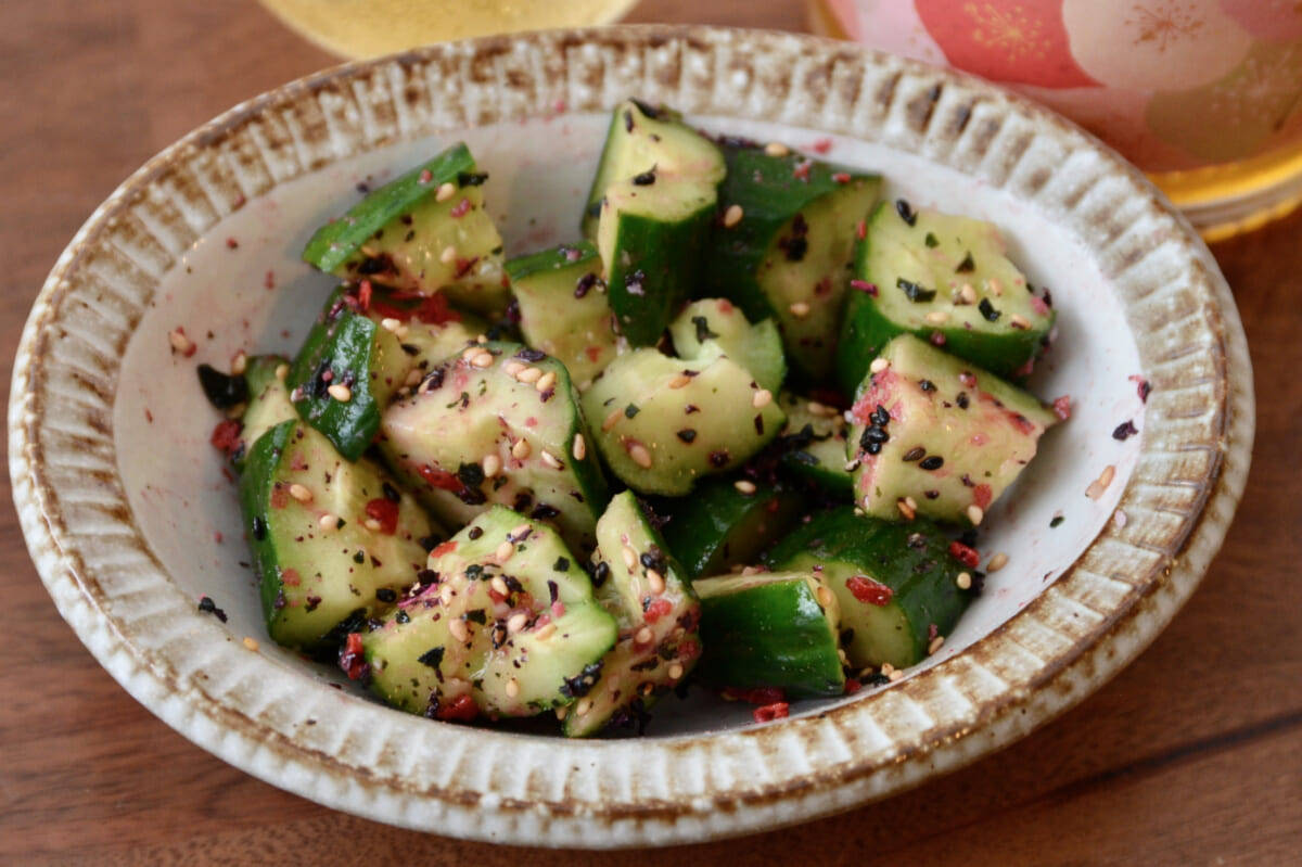 試飲会では、新田さんがオススメの料理も教えてくれました。簡単なもので挙げるなら、「きゅうりの梅⾁和え」とのこと。梅×梅酸味と⽢味で相性抜群とのことで、さっそく筆者も作ってみると、確かに一体感が抜群でナイスペアリング。