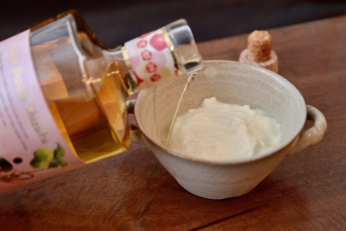 そして新田さんが「⽂句なしのイチオシ!」ということで最後に教えてくれたのが、「ヨーグルトの雫かけ」という大人のデザート。無糖や低糖のヨーグルトに「梅ブランデー雫」をかけるだけで完成する簡単なレシピです。