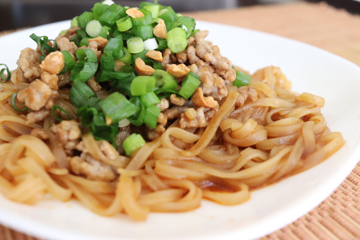 最後は平めんの王様といっても過言ではない中国が誇る担々めん。作り方はパッタイと同じですが、担々めんは温、冷と食べ方が選べるので、冷たくして食べたい場合はソースをからめる前に冷水にさらします。