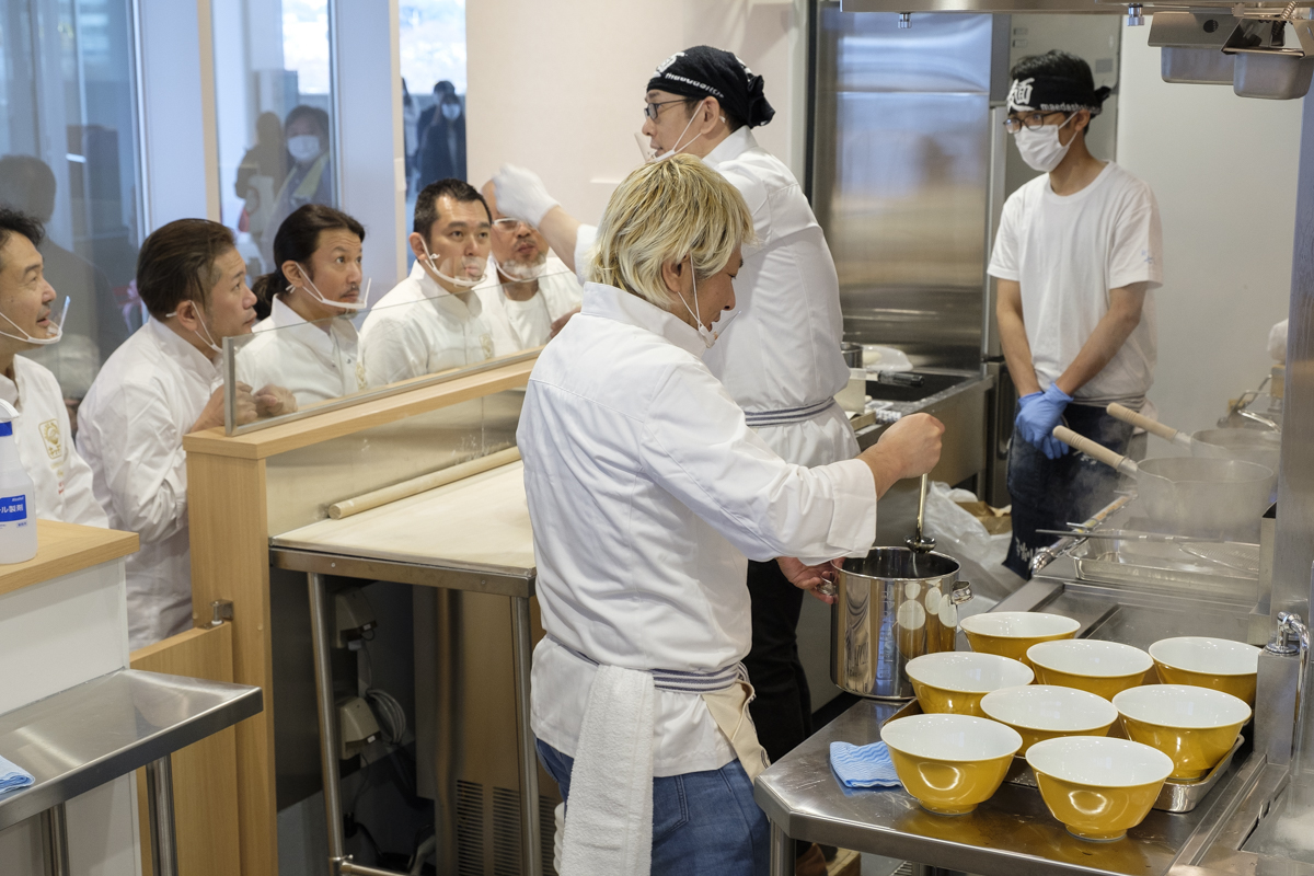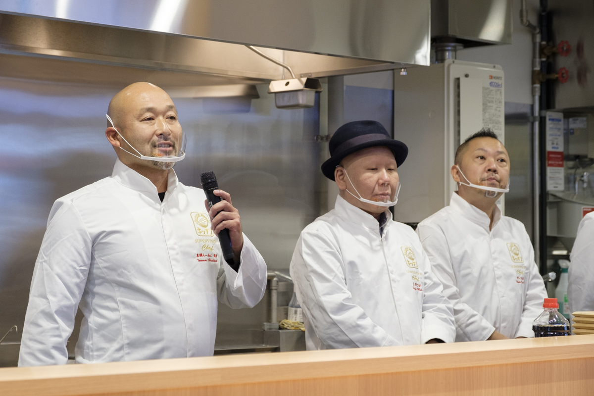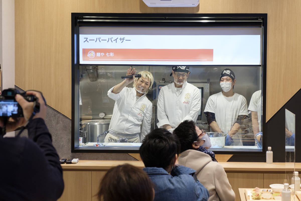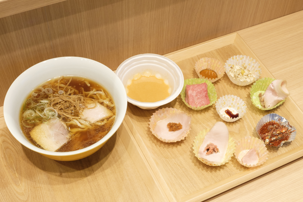 内覧会で提供された一杯は「麺や 七彩」の「打ち立て麺 喜多方ラーメン 醤油」。併せて、スーパーバイザー各店の特徴的な素材やトッピングなども同時提供され、きわめて贅沢なラーメンを味わうことができました。