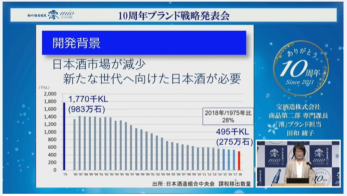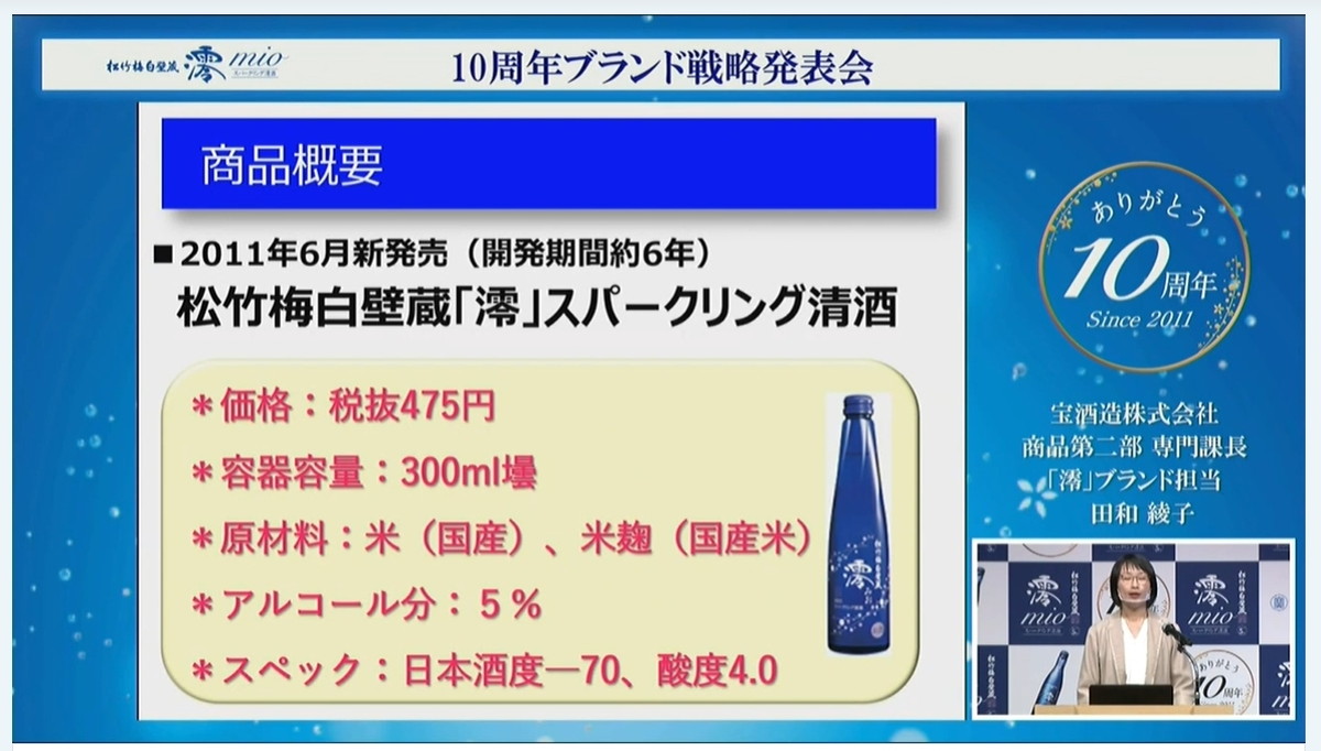 スパークリング日本酒の一大ブランド「澪」(みお)が2021年で発売10周年を迎えるということで、その戦略発表会が開催されました。新たに浅田真央さんをアンバサダーに迎えるなど今後の展開を紹介するとともに、これまでの歩みや「澪」の特徴などにも触れていきます。