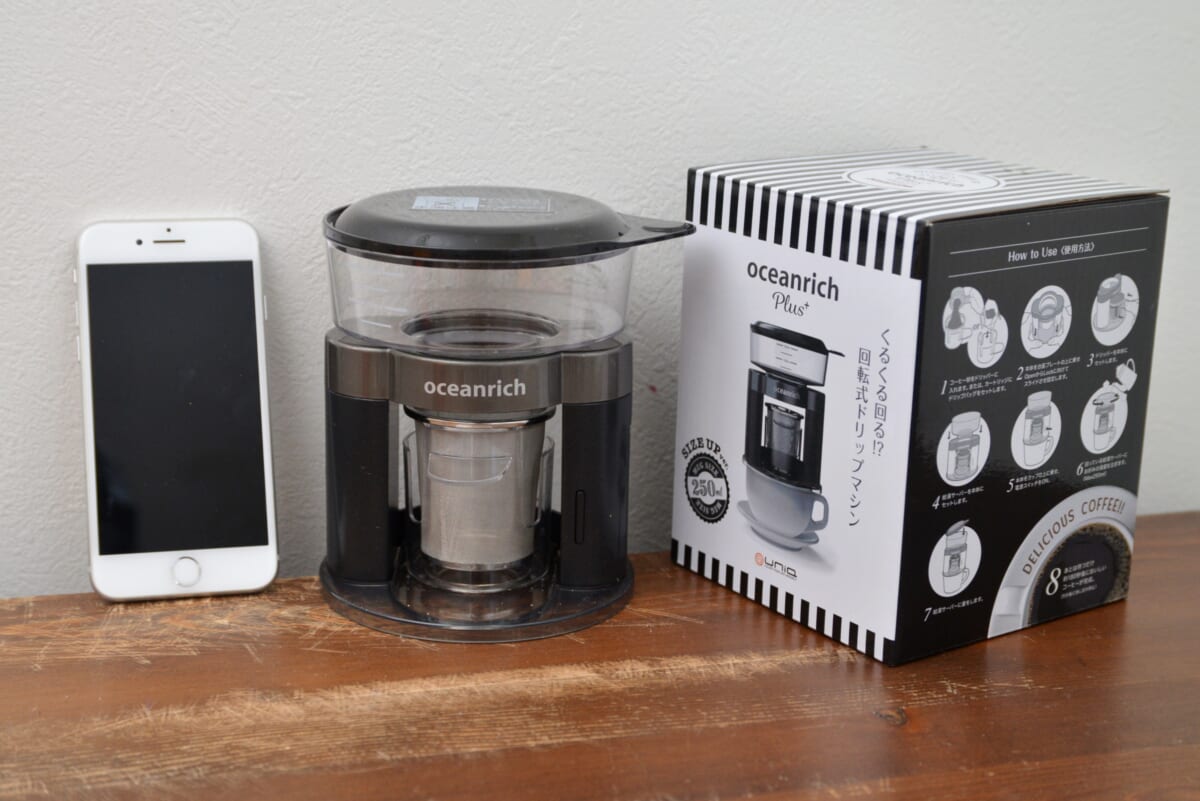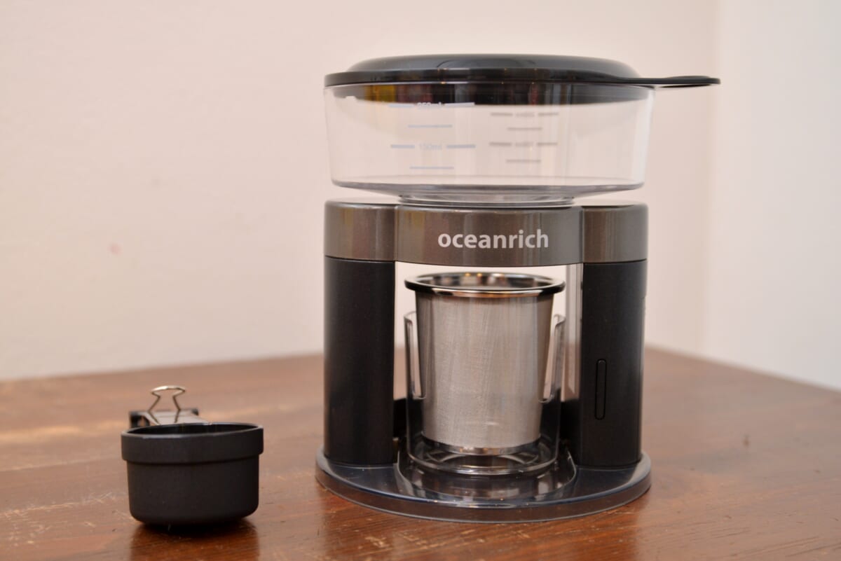 「oceanrich Plus」はアタラシイものや体験の応援・購入サイト「マクアケ」で3000人以上の支援を集め、その後の販売から約1年半で累計4万台の出荷を突破した「oceanrich」の進化版。給湯できる容量が増え、ドリップバッグにも対応したのがアップデートの内容です。まずは基本的なスペックから紹介しましょう。