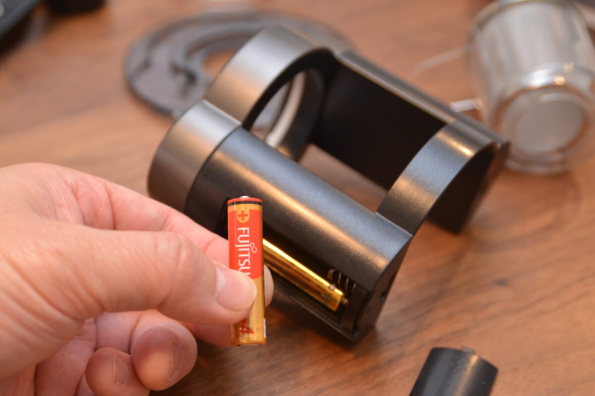 大きなウリは、電池で駆動するという利便性のほか、小さく軽いというコンパクト設計、それでいて機能性と汎用性も高いという点にあります。電源は単四電池が2個。スイッチひとつというシンプル設計で、なおかつドリップ後の消し忘れを防ぐ自動停止機能を搭載(5分で停止)しています。