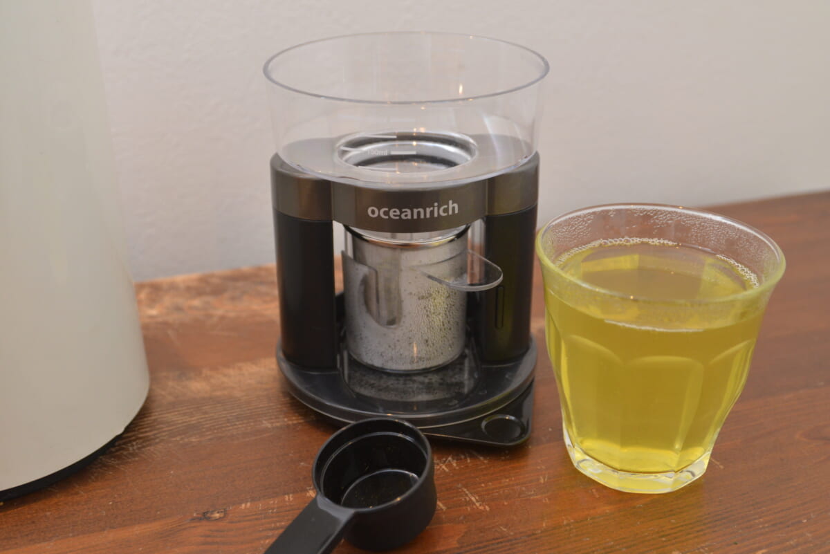 淹れてみるとこれもいい感じ。一般的に、お茶はドリップする飲み物ではありませんが、違和感のないおいしさです。急須やお茶用ポットを持っていない人には嬉しい機能だといえるでしょう。