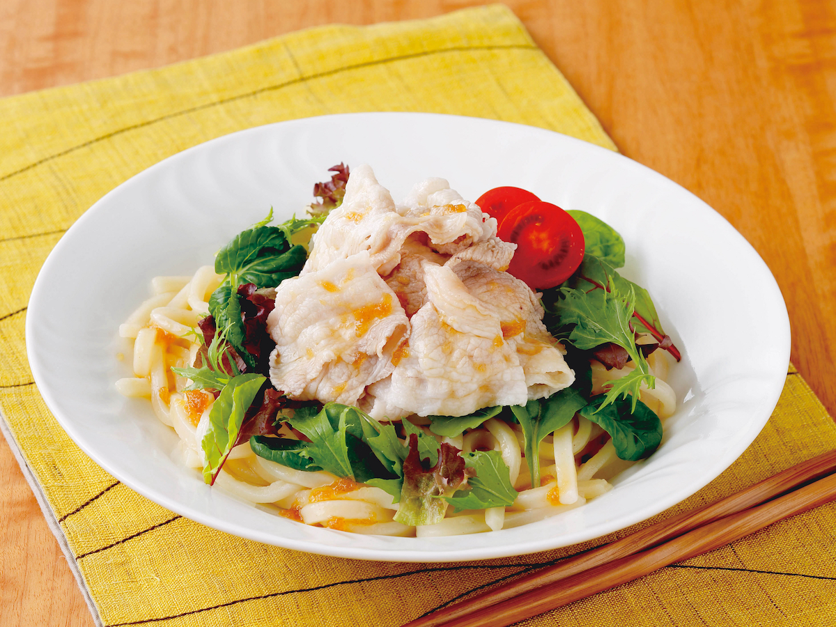レシピは、6種類の味ごとに異なっています。例えば、さわやかな国産すだちを効かせた大根おろしに、焼津産鰹節と北海道産昆布の合わせだしを加え、すだちが香るさっぱりとした味わいの「プチッとうどん すだちおろしうどん」。これを使ったうどんレシピでは、「豚しゃぶサラダうどん」「すだちおろしうどん」「サバ缶で簡単うどん」などが公開。